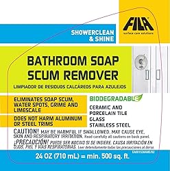 FILA Surface Care solutions, SHOWERCLEAN & SHINE FOAM, Bathroom Foam Cleaner, Removes Limescale, Soap Scum and Water Stains, Cleans and Deodorizes, Safe on Steel, Glass and Ceramic, 24 Oz