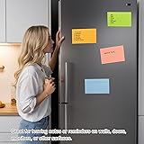 - Large Portable Size: Lined sticky notes 3x5 inch, 9 pads/pack ( 9 multi aesthetic sticky notes ), 40 Sheets/pad. Large sticky notes with lines evenly across on each note, writing becomes neater, great for notes,concise reminders, to-do listsSuper Sticking: HQCME lined sticky notes 3x5 have strong adhesive, make sure sticky notes don't fall off, and removes cleanly as well. Won't damage surfaces or leave an adhesive residue, that allows reapplication as many times as neededBright Sticky Notes: Sticky notes 3x5 contains 9 colors, Red, pink, orange, yellow, light green, green, light blue, blue. The colorful and long sticky notes keep important information from going unnoticed, and elevate the aestheticsThick Paper: Sticky notes 3x5 made with 80 GSM thicker paper, flat sticky notes are strong, stay on any surface without curling. Smooth writing, No ink-seepage. accommodates pens, pencils, markers, and other writing toolsWidely Using: From office, school and even chores, 3x5 lines sticky notes are helping you stay organized and improved productivity. Sticky notes 3x5 adheres for leaving notes or reminders on walls, doors, fridge, desktops, blackboards, notebook