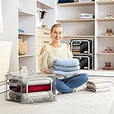 Sorbus Storage Bins with Metal Frame - Stackable & Foldable Clothes Organizer Bags - Clear Soft Plastic Storage Containers with & Carry Handles Organization for Bedding Linen & Clothing