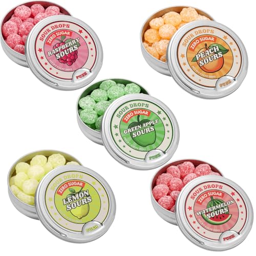 Sour Drops - Small Batch Zero Sugar Assorted Sours - 5 Flavor Variety Mix - No Artificial Sweeteners or Dyes - Vegan, Gluten Free - 5 Gift Tins (60g Each)
