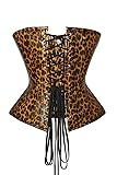 - Turn heads in this cheetah print PVC corset, designed with steel boning to deliver superior structure and support. The curve-enhancing cut cinches the waist for a dramatic silhouette, while the glossy PVC fabric in bold cheetah print adds a daring, fashion-forward edge. Featuring a front steel busk closure for secure wear and a lace-up back with privacy panel, this corset ensures a comfortable and adjustable fit. Perfect for Halloween costumes, gothic and alternative fashion, clubwear, cosplay, or stage performances, this corset is a standout piece that blends wild style with waist-defining structure.