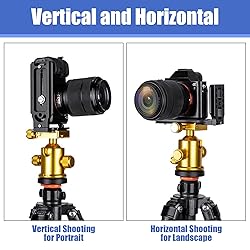 Creative Photographic Partner: This bracket can be used for both vertical and horizontal shooting, can quickly switch from 'landscape' to 'portrait', instead of using a ball joint, which needs to keep level, also can do great job Diverse Compatibility: The vertical camera mount is fit for most of cameras or DSLR with 1/4" threaded hole, such as for Canon EOS 80D T6 5D, Mark i 6D D800 T6i 1300D, Sony a7riii a7rii A7S a6000 a6300, Nikon D750 D850 D3400 D5600 D7200, and can be use on stabilizer gimbal Perfect Milling and Sturdy Use: Made by aviation aluminum with highly-precise CNC technique, the bracket features light weight, high strength and good durability, which will absolutely worth the money and can work with a super long life Well Designed & Practical: This dslr camera l bracket can be installed on tripod head directly via screw holes or on a quick release clamp, leaving enough space for USB cable for charging or connecting with a computer, a couple of stop screws at the bottom to prevent the camera from sliding out Extension use: With multiple 1/4" screw holes, the quick release plate can install the microphones, speedlite, panel lights, field monitors and more photographic accessories, convenient for outdoor shooting Instagram IGTV live streaming or any video shooting
