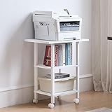 Lerliuo White 3 Tier Printer Stand with Storage, Printer Table for Home Office, Wooden Rolling Printer Cart Shelf with Lockable Wheels fit Fax Machine, Scanner