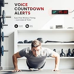 【Clear LED Display for Easy Reading】This gym timer is 12 x 3.2 x 1 inches with big 1.6-inch bright red numbers, so you can spot the countdown from anywhere in your home gym or garage. With 5 brightness levels to choose from, it stays super clear no matter how light or dark the room is. 【Multiple Training Modes】This workout timer packs in all the modes you need — Tabata, FGB, countdown, count-up, EMOM, stopwatch, plus 9 custom intervals (P1–P9). Whether you’re hitting HIIT,, boxing, or just rolling out the yoga mat, this timer keeps your sessions on point. 【Flexible Placement Options】This gym clocks for home gym comes with 2 keyholes on the back so you can hang it up on the wall in seconds. Or just set it down on a table or shelf with its wide, steady base. Perfect fit for garages, home gyms, or any indoor workout spot. 【Easy Remote Operation】This upgraded interval timer comes with a handy remote, so you can switch modes or tweak settings without leaving your mat or breaking your flow. Super convenient for yoga, HIIT, or any tough workout where you just want to stay locked in. 【99dB Buzzer with 4 Volume Levels】No matter how hard you’re pushing or which way you’re facing, this gym timer clock for home gym makes sure you never miss a cue. With a loud 99dB buzzer and 4 adjustable volume levels, you’ll hear every alert — whether it’s a quiet room or a noisy garage gym. 【Gym Timer & Thoughtful Gift】Designed to keep every workout on pace, this gym timer makes training more focused and effective. A thoughtful gift for fitness lovers, coaches, or teammates—supporting discipline, motivation, and steady progress.