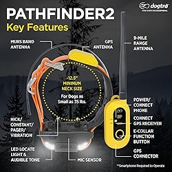 Dogtra Pathfinder 2 GPS Tracker e Collar + Add-on Receiver Black | 9 Mile, LED Light, No Monthly Fees, Free App, Waterproof, Smartwatch Control, Satellite Tracking, Multiple Dogs, Smartphone Required