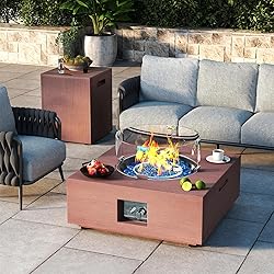 - Powerful Heating: Delivering 40,000 BTUs of heat, the Jocoevol 28" Propane Fire Pit quickly warms up gardens, patios, and backyards on cool evenings Durable & CSA Certified Safe: Built with weather-resistant steel and CSA-certified for safety, this fire pit table ensures lasting outdoor performance and peace of mind 2 Piece Outdoor Propane Fire pit Table Set: Includes a gas fire pit table and a matching tank holder (propane tank not included) for a cohesive and elegant outdoor arrangement Complete with Accessories: Comes with a wind guard, weatherproof cover, and decorative glass rocks for added protection, style, and convenience Multifunctional Design: This 28-inch fire pit table functions as a coffee, dining, or bar table by day, and provides warmth and ambiance by night—ideal for decks, patios, and outdoor gatherings
