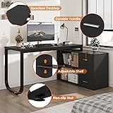 Timechee 55 Inch Black Large L Shaped Office Computer Desk with Drawers, Reversible Long Corner Gaming Work Study Desk Table with Adjustable Shelves & Storage Drawers, for Home Office, Bedroom