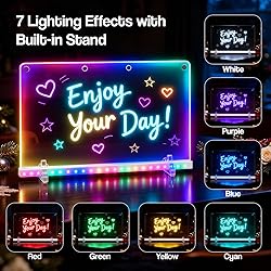 - LED Acrylic Dry Erase Board, 13.8"x10" Light Up Message Board with 4 Modes & 7 Colors, Includes Adapter, Stand, Hanging Chain, 7 Markers & Spray Bottle, LED Drawing Board