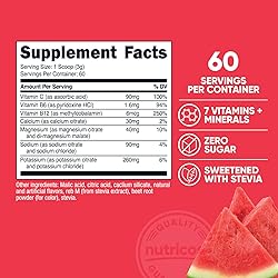 - Fuel your day with Nutricost Electrolytes Complex Powder, designed to help you stay refreshed and hydrated wherever life takes you. Each bottle contains 60 convenient servings, complete with a scoop for easy mixing. This advanced hydration blend combines 7 essential vitamins and minerals to support your daily wellness routine. The crisp Watermelon flavor is naturally sweetened with Stevia, offering a clean and refreshing taste without added sugars. Whether you’re hitting the gym, working outdoors, or simply staying active, Nutricost Electrolytes Complex Powder makes it easy to hydrate smarter. With zero sugar, gluten-free, and GMO-free ingredients, it’s a formula you can feel good about adding to your routine.