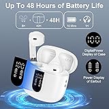 - ★Specifications★ Standby time: >60 hours Working time: >8 hours + charging compartment can charge the earphones 2-3 times Charging time: <2 hour Communication distance: barrier-free 10-15m Battery capacity: 50 amp Bluetooth technology: Bluetooth V5.3 Charging case battery capacity: 300 amp ✅60hrs Playback & LED Digital Display ✅wireless iphone 17 earbuds with buttons for volume and changing tracks, instead of one touch pad for every function. Buttons are easy to use while running. The charging case tells you what percentage each headphone is at. ✅IPX7 Sweat-resistant ✅Wireless ear buds for iphone 17 pro creates a sweatproof seal to protect the internal components against damage. Sports-friendly over-the-ear headphones keep stay in your ear while you running. ✅One Step Auto Paring ✅Bluetooth headphones features a magnetic Hall-effect switch, just open the charging box, the headset will automatically turn on and connect to phone after initially connected. ✅Bluetooth 5.3 Technology ✅Bluetooth 5.3 has greatly improved the transmission signal. It provides faster, more stable wireless connections and lossless, low-latency high-quality sound, and offers extended range with virtually no loss. ★Wide Compatibility★ iPhone 17/ Air / 17 Pro/ 17 Pro Max, iPhone 16e / 16 / 16 Pro/ 16 Pro Max/ 16 Plus, iPhone 15 / 15 Pro/ 15 Pro Max/ 15 Plus iPhone 14, 13, 12, 11, XS, XS Max, X, XR, SE, 8 / 8 Plus, 7 / 7 Plus, 6 / 6 Plus, 5 / 5S / 5C iPad Pro 12.9" Gen1/Gen2/Gen3, iPad Pro 11", 10.5",iPad 10.9" 10th Gen 2022, iPad Mini 5th/ 4th/ 3rd/ 2nd, iPad Air 4th/ 3rd/ 2 Google Pixel 10 Pro XL,10 Pro Fold,10 Pro,10,9a,9 Pro XL,9 Pro Fold,9 Pro,9,8a, 8 Pro, 8, 7a, 7 Pro, 7, 6, 6 Pro, 6, 5, 4 XL, 4, 3 XL, 3 Samsung Galaxy S25 FE S25 Edge S25 Ultra S25 S25+ S24 FE,S24 Ultra,S24 Plus,S24,S23,S22,S21 Samsung Galaxy A17 A56 A36 A26 A16 5G A15 A14, Note 20 10, Z Fold 7 6 4 3, Z Flip 7 FE,7 6 5 4 3, and more.