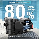 【Smart variable speed pool pump & Up To 80% Energy Saving】CrestWave Variable Speed Pool Pump supports intelligent APP remote control, allowing 24-hour customized speed cycles & schedule setting anytime anywhere. It cuts energy consumption and monthly electric bills by up to 80%, saving up to 2000+ kWh and $300+ annually, keeping your pool water clean while saving real money for your family. 【Permanent Magnet Motor & Stable Flow】This 1.5HP self-priming Pool Pump adopts a high-performance Permanent Magnet Motor, which delivers stronger efficiency & more stable operation than traditional motors. It provides 5070GPH flow and 49.2FT maximum head with 4 adjustable speeds, suitable for In/Above Pool Pump scenarios, in-ground pools, spas and heavy-duty filtration, ensuring long-lasting reliable water circulation. 【Whisper-Quiet 38dB Operation! 】 Built with advanced TEDC cooling technology, this quiet Pool Pump runs at only 38dB library-level low noise, avoiding loud humming and motor overheating. It supports peaceful backyard gatherings, poolside relaxation and undisturbed use day or night without noise disturbance. 【Dual-Voltage & Universal Fit】 Designed with dual voltage (110V/230V, 50/60Hz) for wide application, this smart variable speed pool pump comes with 1.5in standard port and 1.5in-to-2in adapter, perfectly compatible with 1.5in and 2in pool pipes. No extra piping modification required, ideal for household and commercial use. 【Saltwater & Corrosion Resistant】Engineered with a heavy‑duty reinforced thermoplastic body and professional corrosion‑resistant seals, this pool pump effectively withstands saltwater, chlorine, and harsh outdoor environments for long-lasting durability. It is equipped with a 6FT UL‑certified power cord for safe, quick, and effortless installation. The extra-large transparent filter basket and shatterproof lid allow easy debris inspection and simple daily maintenance. 【1-Year Warranty + 24/7 Safety Net! 】 CrestWave provides 1-year warranty and 24/7 online customer service for this Variable Speed Pool Pump. Our professional team offers fast response and effective solutions, protecting your investment and ensuring worry-free shopping.