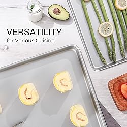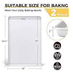 🥰【Size & Versatile Baking】Our cookie pans feature an inner size of 17" x 11.5" x 1" and an outer size of 17.5" x 12" x 1". Whether you're baking sweet treats like cookies and pastries or roasting savory dishes like chicken and vegetables, these trays provide the flexibility to handle it all. They are perfect for daily meals, celebrations, and holiday feasts. 🎨【A Healthier Baking Choice】The Whitford-reinforced for exceptional release, Its chemical-free double-layer design enables you to easily prepare healthy and delicious meals. This coating is not only safe and reliable, but also has a smooth non-stick surface due to containing 34% silicon. Just a simple rinse and wipe is enough to clean it quickly - the entire process only takes 3 minutes. 【Premium Extra-Thick Material】Crafted with 57% thicker carbon steel, these heavy-gauge baking trays are built to last. Designed for stability, even heat distribution, and long-term durability, Built to withstand temperatures up to 450℉without warping and come with a peeling-resistant warranty. 🛒【Practical & Aesthetics】The HONGBAKE baking tray set is not only a practical baking tool, but also an elegant and unique table decoration. High-quality kitchenware should balance both quality and aesthetics. The light color design can also prevent food from getting too dark.