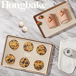 【Patented Diamond Texture】The cookie sheet pan set features a precision diamond-textured base, enhancing its non-stick properties and ensuring even, rapid heat airflow—perfect for consistently baked cookies with no overcooked or undercooked areas. 【Size & Versatile Baking】Our baking pans feature an inner size of 17" x 11.6" x 1" and an outer size of 17.6" x 12" x 1".Whether you're baking sweet treats like cookies and pastries or roasting savory dishes like chicken and vegetables, these trays provide the flexibility to handle it all. They are perfect for daily meals, celebrations, and holiday feasts 【Premium Extra-Thick Material】Crafted with 57% thicker carbon steel, these heavy-gauge cookie trays are built to last. Designed for stability, even heat distribution, and long-term durability, Built to withstand temperatures up to 450°F without warping and come with a peeling-resistant warranty. 【A Healthier Baking Choice】With a five-layer design free of harmful chemicals, half baking sheet helps you prepare healthier meals. The smooth non-stick surface prevents food from sticking, and it only requires a simple rinse and wipe for quick cleaning - it can be done in just 3 minutes. 【Brand Craftsmanship & Guarantee】Since its establishment, HONGBAKE has been committed to making each baking tray a reliable companion for baking. From material selection to curvature polishing, every step is meticulously considered to ensure that you receive the most satisfactory product! If you have any questions or requirements, please feel free to contact us at any time.