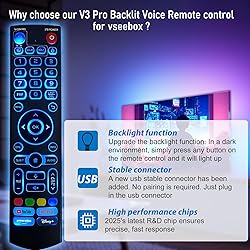 - Upgraded Universal Backlit V3 Pro remote Replacement Voice Remote Compatible with vSeeBox V1 Pro/V1 Max/Elite/Max/ V2 Pro / V3 Pro / V3 Plus / V5 Pro,with Stable Connector,2 Year Warranty