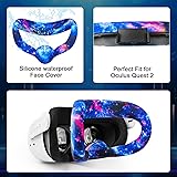 Relohas VR Accessories Kit Compatiable with Oculus Quest 2, Includes Silicone Face Cover, Controller Grips, Protective Shell, Lens Cover & 10 Disposable Eye Covers, No Signal Blocking (Starry Blue)