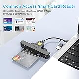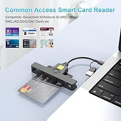 【CAC Reader Military Compatibility】CAC reader usb c DOD Military Smart Card Reader is wide compatible for CAC Cards, Government ID, National ID, ActivClient, AKO, OWA, DKO, JKO, NKO, BOL, GKO, Marinenet, AF Portal, Pure Edge Viewer, ApproveIt, DCO, DTS, LPS, Disa Enterprise Email and other CAC cards. 【Switch to Connect】CAC reader works with almost all contact chip cards and PC operating systems, including Windows (32/64 bit) XP/Vista/7/8/10/11, Mac OS X. The CAC military card reader is Seamless transitions between USB C and USB A with 2-in-1 double-input ,compatible with laptops, computers and both USB and Type C devices.(Not work with ipad and iphone) 【Certifications Standards】Type C/USB military cac card reader support ISO7816 Class A, B and C (5V/3V/1.8V) Smart Cards; CAC military reader compatible with US Military and Government DOD ID cards for secure login and RECOMMENDED by militarycac.com Movement detection with auto power-off Automatic Detection of smart card type Short circuit and thermal protection 【Plug & Play + Strong Security】USB Type C DOD military cac reader ideally suited for use in high-security federal government applications, online banking and cac card payment apps, Windows authentication and Single Sign-On (SSO), Network login, and much more. smartFold usbc cac reader is easy to use and portable carry with folding design 【Intelligent Check Matching】CAC reader for military automatically installs driver (Windows system) and automatically detects smart card type. Buy cac card reader you will get 24 months manufacturer warranty, hassle-free replacement and free lifetime technical support.