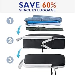 - Each compression packing cube features a zippered compression system to condense your clothes and maximize your luggage space by 50%. Thus, you can bring everything you need without the extra bulk. Made with a durable 600D ripstop nylon fabric that is washable and water-resistant, these packing cubes for travel are built to withstand years of use. A must-have TRAVEL ESSENTIALS for travelers. The wide-open zipper closure makes the travel cubes much easier to pack - folding your clothes and stacking them inside the compressible packing cubes, or rolling them up. The webbing handle of each luggage cube allows you to grab and hang them easily.
