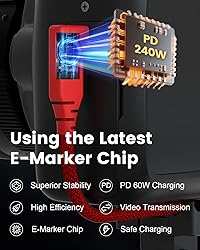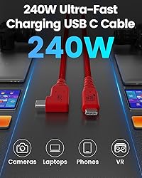 【40Gbps High-Speed Transmission】With 40Gbps data rate and EMI/RFI shielding, this USB cable enables instant transmission of large RAW files and 8K@60Hz videos between Sony A7IV/Canon R5 and laptop. The integrated E-Marker chip regulates power and data flow, preventing overloads for latency-free real-time tethered shooting and immediate editing. 【240W PD Charging】Delivers 240W PD charging to cameras, laptops, and Thunderbolt 4/3 devices while transferring data. Beyond tethered shooting, it seamlessly syncs and charges VR headsets, smartphones, and laptops. One cable handles power and data, eliminating battery worries and streamlining workflows. 【Reinforced Right-Angle Connector】The sturdy right-angle USB 4 connector reduces port bending damage, ideal for Sony A7IV/Canon R5 setups. Pair with cable clips to minimize clutter, ensuring a secure connection in studios or on location for a neat, stress-free tethered shooting experience. 【High-Visibility Braided】Nylon-braided jacket resists bending, tugging, and tripping. Bright color design enhances visibility in cluttered setups, avoiding cable mix-ups. Professional-grade build pairs with organizers for a clean, efficient workspace. 【One is Enough】Integrates 8K transfer, 40Gbps sync, and 240W charging for DSLR/mirrorless tethered shooting. Also compatible with VR headsets, smartphones, and Thunderbolt devices. Simplify gear with a USB cable that excels in professional shoots and daily charging, with no performance compromises.