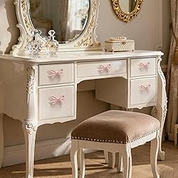 CEYMIO 8 Pack Pink Bow Dresser Knobs, Large Decorative Cabinet Drawer Pull Handles for Girls Bedroom and Nursery Room Decor