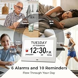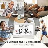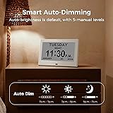7'' Digital Clock, Dementia Clock With Date And Time, 10 Reminders, 6 Alarms, Auto-Dimming, Auto DST, Remote Control, Large Display Alarm Clock For Seniors, Gifts For People With Dementia, White