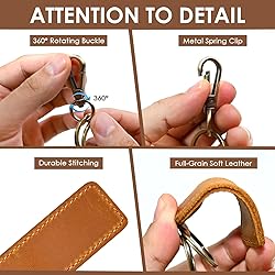 - Our leather keychains have a delicate texture, a soft touch, and a subtle luster. The durable leather resists friction damage during daily carry, fitting comfortably in your palm, pocket, or bag. Designed to prevent loss and convenience, it features a D-ring nut that remains tight and does not automatically fall off, as well as a quick release carabiner,holding car, home, and office keys securely while reducing jingling. It is a birthday and Christmas friendly gift, expressing care for family and friends. Color:Black+Light brown Material:Leather Size:The rectangular leather part: 8 cm/3.15 inX width:2.8 cm /1.10 in,key ring:3 cm/1.12 inches in diameter. Packaging includes:2 leather keychain