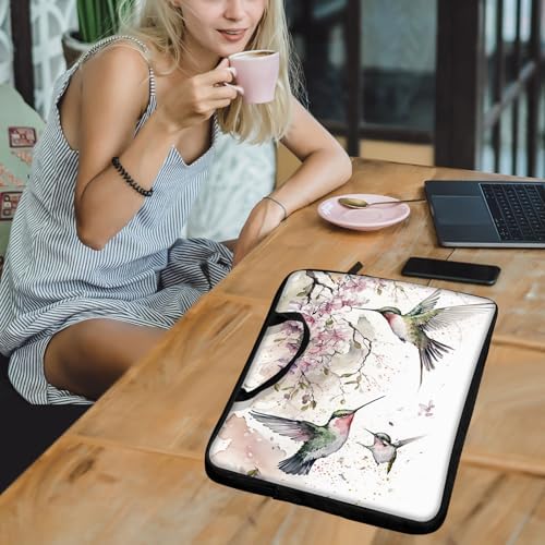 Laptop Sleeve Case 12 Inch, with Handle Computer Shockproof Protective Soft Cover Case,Hummingbird Pink Cherrys