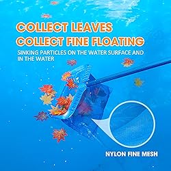 Heavy-Duty & Durable Design: Our Pool Stomach skimmer net is built with a reinforced, heavy-duty plastic frame that won't twist, break, or bend under pressure. It's designed for long-term use, providing a reliable and durable solution for all your pool cleaning needs. Deep, Fine Mesh Bag: The extra-deep, ultra-fine mesh bag is highly effective at scooping up everything from tiny debris and pollen to large leaves and bugs. This deep net allows you to catch more in one pass, making your pool cleaning job faster and more efficient. Wide Scoop for Maximum Efficiency: With a wide-mouth design, this pool leaf net covers a larger surface area, allowing you to quickly and effortlessly skim the surface of your pool. It's the perfect pool tool for removing debris from both inground and above ground swimming pools. Easy Attachment to Standard Pool Poles: Compatible with most standard pool poles, this rake can be easily attached and secured, providing extended reach for thorough cleaning of in-ground and above-ground pools. (Pole not included.) Versatile Pool Cleaning Solution: This isn't just a leaf skimmer; it's a versatile pool cleaning tool for all seasons. Use it to effortlessly remove floating debris from pools, spas, fountains, and ponds, keeping your water sparkling and clear year-round.