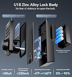 Latest Instruction Manual: Uploaded on the product page – refer to it before installation and use for accurate operation steps Keyless Entry Deadbolt with Handle Set: Ulecoce smart keyless entry door lock supports multiple ways to access, 100 user codes (97 users and 3 admin passcodes), one- time code, 3 backup keys. Everything you need in 1 safe and secure smart lock. Smart Access Management: Front door lock set keyless entry with handle are 3 administrators and 97 user codes. Generate and share one-time, permanent and scheduled codes with your family,house sitters, guests. Perfect for homes, Airbnb, apartments, offices, and hotel. Auto-Lock Convenience: Digital door locks for front door is designed with a smart one-touch switch. Keypad door lock offers one-touch lock feature to control the door easily. You can enable the auto-lock feature and set the timer from 5s-60s! Besides, there is a “one-touch lock” function on the rear lock body, making it convenient for you to lock and unlock in a timely manner. Now you don't need to worry about forgetting to lock the door. Safeguard Home Security: Keypad door lock with handle equipped with auto-lock, one-touch locking, anti-peeping code, low battery alert to enhance your home security. Additionally, the lock is powered with 4 AA batteries (not included) could be used for around 180 days without frequent battery replacement. Our door lock is built to withstand extreme temperatures (-4℉ to 140℉) and is IP54 waterproof. It's an essential tool for your home. Easy to Install: The Ulecoce door locks for front door no extra drilling and costly locksmith required, just use a screwdriver to easily install and program the door lock in 15 minutes. It is compatible with left and right-hand doors. Ulecoce is committed to providing you with peace of mind guarantee. We offer a 3-year product warranty and lifetime after-sales service to ensure your satisfaction. If you have any questions or concerns, our customer support team is ready to assist you at any time. Please feel free to send us an email—we provide 24/7 email support and will respond promptly to resolve your needs.