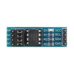 【High Capacity Storage】 32Kbit EEPROM module; 4096 x 8 bit organization; supports byte and page read/write operations; Suitable for system configuration storage and data logging. 【Wide Voltage Compatibility】 Operates from 1.8V to 5.5V DC; compatible with 1.8V, 3.3V, and 5V systems; no additional voltage regulation required for most applications. 【Fast I2C Communication】 I²C/SMBus compatible; supports 100kHz and 400kHz modes; 5ms write cycle time with self-timed mechanism; enhances real-time data recording performance. 【Easy Integration with Development Boards】 for for Arduino compatible; for for Raspberry Pi supported; pin layout matches standard DIP-8 format; easy to use with breadboards and development kits. 【Robust Write Protection and Data Retention】 1,000,000 write cycles guaranteed; 100 years data retention; WP pin enables hardware-level write protection; prevents accidental data loss in critical applications.