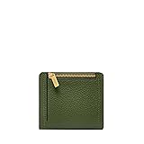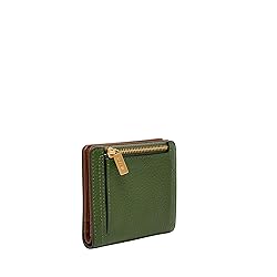 Made from rich leather, this small bifold wallet is designed to keep essentials organized. Its compact silhouette fits easily into smaller bags. Dressed in the color Mystic, a leafy green with golden undertones that captures the spirit of Modern Americana. Perfectly proportioned: 4" L x 1" W x 3.5" H Premium craftsmanship: genuine leather small bifold wallet. Fossil leather products support responsible manufacturing via the Leather Working Group. It's all in the details: 5 credit card slots, 2 bill compartments, 1 ID window, 1 back zipper pocket RFID Blocking: Lining helps protect credit/debit cards from unwarranted scanning