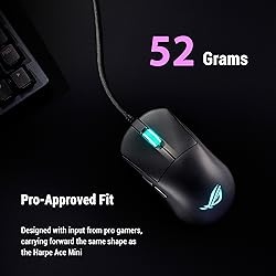 Pro-approved, 52-gram design: Retains the favored shape of the Harpe Ace Mini mouse, made to fit a wider spectrum of handshapes and grip types Push-Fit Switch Sockets: Compatible with mechanical switches for users to vary click force and extend the mouse’s lifespan ROG Micro Switch II: Provides crisp clicks and exceptional 100-million-click lifespan Precise motion tracking: 12,000dpi with <3% deviation and 1000Hz polling rate ROG Paracord and 100% PTFE mouse feet: Quality materials facilitate smooth and fast movements
