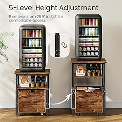 Adjustable Height for Comfort: This mini fridge stand offers 5 adjustable height levels. You can set it between 25.6 and 31.1 inches to match your counter or for a more comfortable access to your appliance, reducing the need to bend over Spacious Pull-Out Storage: The mini fridge cabinet features a large, fully enclosed drawer on smooth-rolling casters. This substantial storage compartment is suitable for keeping snacks, beverages, or kitchen essentials organized and out of sight Sturdy Build with Stable Support: Constructed with engineered wood panels and a solid metal tube frame, this mini fridge table provides reliable support. Four adjustable leveling feet help keep it steady on uneven floors and protect your surfaces Easy to Move & Secure in Place: Four 360-degree swivel casters make relocating the pull-out drawer simple, with 2 lockable ones to securely hold it at a desired position when needed. This large side table facilitates your beverage storage Straightforward Assembly & Use: The clear instructions and labeled parts help with the setup of this mini fridge stand. Once assembled, the slide-out drawer and height adjustment mechanisms are intuitive to use for your daily routine