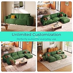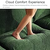 CLOUD-LIKE COMFORT: The oversized couch is built with precision-layered cushioning, combining plush cotton with high-resilience foam over a sturdy box-spring base. This creates a foundation of deep, consistent support. Unlike simpler boneless sofas that rely solely on filler and can sag over time, our design maintains its shape and structure, resisting deformation even with daily use. It delivers enduring, uniform comfort—a durable and reliable choice for your home, year after year MODULAR FLEXIBILITY: Configure your perfect seating with this modular sectional sofa. Measuring 165"W x 66"D x 33"H, it comfortably seats 4-6. The movable ottoman allows you to create an L-shape, U-shape, or separate chaise and loveseat to fit your living room, apartment, or home theater. Built with a solid wood and steel frame, each seat supports up to 300 lbs for reliable, everyday use ERGONOMIC SUPPORT: The cozy cloud sofa features a smart zoned seat – firm support in the center and soft, sloping edges. The spacious 37" wide seat and 22" deep cushion provides ample room to lounge or curl up. Plush backrest cushion offers full lumbar support to ease pressure points. The 8.7" wide armrests are perfect for resting your arms or keeping remotes within reach. The gently lowered front edge makes sitting down and getting up effortless, creating an immersive and comfortable experience PREMIUM FABRIC: Upholstered in soft, breathable chenille fabric that feels gentle against the skin, this luxury sofa is comfortable year-round. The removable, machine-washable covers make maintenance easy. Available in three vintage-inspired colors, it adds a touch of understated elegance to complement a variety of home décors EASY SETUP & SUPPORT: Your cloud couch sectional arrives in multiple boxes for easier handling. Please check all packages upon delivery. The cushions are vacuum-sealed; after unboxing, simply fluff and gently massage them—they will regain their full loft within 48 hours. If you notice any shipping damage or are not satisfied with your purchase, please contact our customer service team. Your feedback is important to us