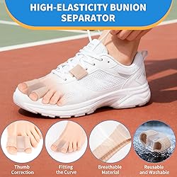 【Gentle Toe Alignment & Bunion Relief】 Designed to naturally separate and realign the big toe and second toe, this bunion corrector helps reduce friction, rubbing, and pressure caused by bunions, hammer toe, and overlapping toes. 【Soft & Comfortable Silicone Material】 Made of breathable fabric combined with ultra-soft, high-elastic silicone, these gel toe separators provide all-day comfort without slipping or deforming. Gentle on skin, suitable for sensitive feet. 【Easy to Use & Reusable】 Featuring a curved ergonomic design, simply stretch the gel toe spacer and slide two toes into the loops for a secure fit. Washable and reusable for long-term daily use. 【Multi-Purpose Toe Straightener】 Effectively relieves discomfort from bunions, hammer toe, curled toes, corns, calluses, blisters, and toe friction. Helps reduce pressure on sensitive areas and supports toe alignment correction. 【For Daily Wear & Light Activities】 Unisex toe spacers for women and men, ideal for home, sleeping, working, or light activities such as walking, yoga, and casual jogging. Comfortable support anytime you need pain relief.