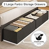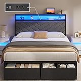 Fluest Full Bed Frame with 2 Drawers, Upholstered Headboard with Storage and Charging Station, LED Lights, Fabric Drawers with Wheels, Under Bed Storage, No Box Spring Needed, Easy Assembly, Grey