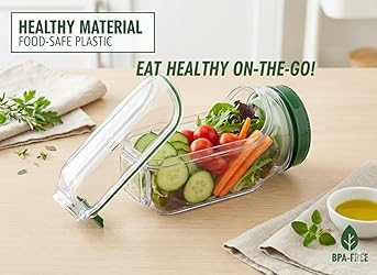 - Meet the next evolution of fresh lunch storage — a multi-purpose Salad Pod designed for people who love crisp ingredients, clean eating, and time-saving convenience. Built around a wide, side-opening layout, this premium salad jar design makes it easier than ever to load greens, toppings, and dressings without spills or awkward angles. Simply open, layer, snap shut, and enjoy a clean prep experience every time. Powered by FridgePod freshness technology, this salad container for lunch keeps ingredients crisp for hours by separating moisture and improving airflow. Whether you prep the night before or assemble a quick morning meal, your salads stay vibrant and crunchy. Its generous capacity functions as a full-size salad bowl, an on the go salad jar, a mason jar salad container, and even a portable salad shaker — all in one sleek, reusable pod. Built for versatility, it handles salads, grain bowls, fruit mixes, pasta, overnight oats, or snacks with ease. The intuitive side-opening system also aligns with the style of salad mason jars with side open, making layering ingredients smoother and more precise. It’s a smart upgrade to everyday salad containers, salad bowls to go for lunch, or a salad dressing container to go. Whether you need the function of a large salad bowl with lid or the clarity of a glass salad container for lunch, this portable pod delivers similar convenience with lighter, safer materials. Crafted from durable, BPA-free materials, this salad pod mason jar is designed for daily use and endless reuse. Its smooth interior and rounded edges make cleaning quick and simple, while a secure leakproof seal protects your meal during commutes or travel. Whether you shake, layer, chill, or prep ahead, this FridgePod-inspired salad jar with side opening gives you full control over your meals with freshness you can see and taste. It’s the modern way to pack food you’ll genuinely look forward to eating.