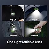 【Compact Dual-Light EDC Flashlight】This mini EDC flashlight packs more capability than its size suggests. A dual-light layout combines a top beam with a full side panel, plus a dynamic RGB ambient mode, all inside a 1.2 × 2.1 × 1 in aluminum body weighing only 43 g. The solid metal build feels premium, pocket-friendly, and reliable—an everyday compact pocket clip light that stays ready for quick tasks or emergencies. 【Dual-Side Illumination】The top beam provides 3 brightness levels and a UV mode for inspections or scorpion spotting. The side panel adds red, blue, 3-level white floodlight, and a dynamic color-cycling ambient mode that delivers a lively, disco-style lighting effect for signaling, visibility, or atmosphere. 【Memory Mode & Battery Indicator】A convenient memory function restores the last mode used—no need to cycle through brightness every time. The built-in battery indicator keeps charging status and remaining power clear at a glance, making this rechargeable clip on flashlight easy to manage. 【Gesture Sensor Mode – Hands-Free Switching】A built-in motion sensor lets you turn the light on or off with a simple hand wave—no need to press any buttons. The short-range 6 cm activation prevents accidental triggers while giving you clean, contact-free control when your hands are dirty, wet, oily, or busy with tasks like cooking, repairing a car, or handling gear. A smart upgrade that makes this mini EDC flashlight faster and safer to operate in real-world situations. 【Clip + Magnetic Mounting】A strong pocket clip and magnetic tail transform the light into a hands-free tool. Attach this clip on flashlight to a hat brim, backpack strap, or shirt pocket, or mount it on metal surfaces such as car hoods for repairs, fishing, camping, or roadside emergencies. 【USB-C Charging & IPX6 Waterproof】USB-C fast charging keeps this compact rechargeable flashlight ready for everyday carry. With IPX6 waterproof performance, it withstands rain, splashes, and outdoor environments without worry.
