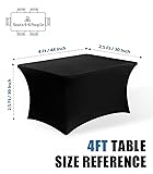 Lemict 4 ft Spandex Table Cover Open Back Fitted Tablecloth Stretch Washable Tablecover Table Topper for Rectangle Tables Black - 2 Pack