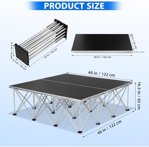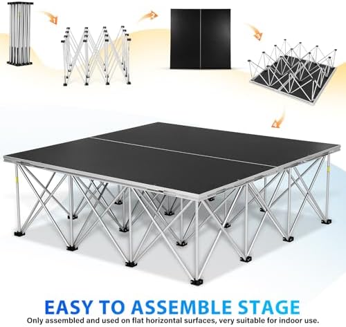 - 【FOLDABLE & PORTABLE DESIGN】: Featuring an innovative design that folds in half to a compact 2'x4' footprint, the foldable stage platform drastically reduces storage space and enables easy transportation in a standard passenger vehicle, offering unparalleled portability for mobile event professionals