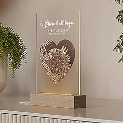 PERSONALIZED “WHERE IT ALL BEGAN” MAP GIFT: Celebrate the place your love story started with this custom satellite map plaque. Simply add your names and the exact location where you first met — we’ll print a stunning full-color satellite view centered on a red heart. A truly meaningful and romantic keepsake for couples. PREMIUM QUALITY WITH UV PRINTING: Each map is UV-printed on durable, crystal-clear acrylic, capturing every detail of your unique satellite view. The vivid colors and fine texture make this plaque a standout centerpiece in any room — long-lasting, elegant, and made with love in the USA. BEAUTIFUL LED BASE OPTIONS: Choose from 4 stylish bases: natural wooden or acrylic (non-lighted), or a wooden base with warm white or RGB lighting. The gentle glow highlights your personalized design, creating a soft and intimate atmosphere — perfect for bedrooms, living rooms, or nightstands. MEANINGFUL ANNIVERSARY OR VALENTINE’S GIFT: Whether it’s your first date, wedding anniversary, or Valentine’s Day, this satellite map plaque makes a heartfelt reminder of how your journey began. Ideal for couples, girlfriends, boyfriends, husbands, and wives — a thoughtful gift they’ll treasure forever. UNIQUE & EMOTIONAL KEEPSAKE FOR COUPLES: This is more than just décor — it’s your story captured from above. From your first date to your forever home, every couple has that one special location. Preserve yours with a personalized satellite map that beautifully symbolizes the start of everything you share.