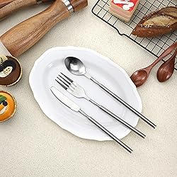 • Color: SilverMaterial: Stainless SteelDimensions: 21-22cm, Maximum 63-65cmPackage Included: 3-piece stainless steel retractable cutlery set