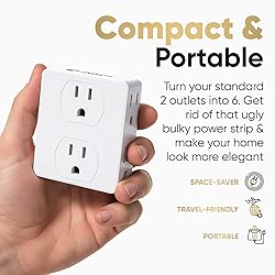 Smart, Space-Saving Design: Your standard 2 outlets become 6 outlets and you can get rid of that ugly bulky power strip making your home look more sleek and elegant. The smart design with side outlets on the outlet extender makes it perfect for hard to reach places where you want your cords sideways, like behind the couch, behind furniture and so on Plugs for outlets: Unidapt wall outlet extender box can accept up to 6 grounded 3 prong bulky plugs at once without blocking and keeping it simple charging many devices at once. Great for plugging in compatible devices such as laptops, cell phones, cameras, shavers etc. For Multiple uses: The extension plug is not only great for home, dorm & office. No surge protection makes these outlet extenders the perfect travel accessories. The multiple outlet wall plugs are great for all those hotel rooms with only one outlet by the bed, or not enough outlets in the room. Or if you just prefer to keep all your devices organized neatly in one place. Designed to save space: Our multi outlet wall plug is super small 2.9*2.5” and only 1” deep when connected. These multi 3-prong outlet splitters are perfect for indoor use or even travel. Keep less tangle of cords in the bedroom, bathroom, dorm, office and living room. These plug extenders make an awesome gift for friends or family. Reliable safety protection: The outlet extenders are super safe and conforms to UL standards. The built over-voltage protection and fire-proof ABS shell ensures safety. All Unidapt products comes with 1-year full warranty (with refund or replacement) and a phenomenal customer service.