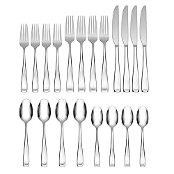 WHY IT'S SPECIAL: Moda flatware is all about symmetry, clean lines, and classic sensibility. It's a blend of traditional elegance and modern tastes. This versatile flatware set coordinates flawlessly with various dinnerware to instantly elevate any table. WHO IT'S PERFECT FOR: Those seeking stainless steel silverware that adds a touch of elegance and sophistication to everyday meals and special occasions alike. WHAT'S IN THE BOX: This 20-piece flatware set includes service for 4 people in the form of 5-piece flatware place settings. Each place setting includes a dinner fork, salad fork, dinner knife, dinner spoon, and teaspoon. WHAT IT'S MADE OF: Moda flatware is made of reliable 18/10 stainless steel for increased durability and rust resistance. HOW TO CARE FOR IT: This 20-piece flatware set is dishwasher safe for added convenience and easy clean up.