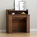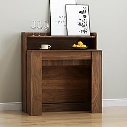 Banzeem Extendable Dining Table with Shelf, Transformer Extra Console Table for 1-9 People, Folding Space Saving Dining Room Table for Homes, Apartments, Walnut