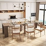 - 【Extendable Dining Table】Features 5 removable extension leaves (35.4" x 19.7" each), allowing the table to expand from a compact 20" to a generous 118", comfortably seating 1 to 12 people. Perfect for intimate dinners or large gatherings.【Space Saving Dining Table】Built with an aluminum telescopic mechanism and a central iron leg for superior stability. Each leaf is easy to insert and remove, adapting seamlessly to your dining needs. Measuring just 20” wide when folded, it doubles as a space-saving console or entryway table.【High-quality Materials】The thick MDF surface is moisture-proof, anti-corrosive, heat-resistant, and wear-resistant, ensuring lasting durability and a modern aesthetic. The table supports up to 440 lbs for worry-free use.【Applicable to Multiple Scenarios】Whether used as a compact console table or fully extended as a banquet table, its sleek and modern design complements any room. Ideal for kitchens, dining rooms, or as a multifunctional conference table.【All Accessories are Complete】There are installation instructions and complete accessories in the package, which can quickly help you assemble the dining table.