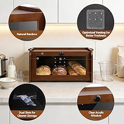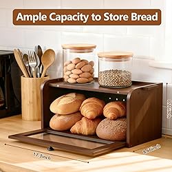 • Bread Box for Kitchen Countertop, Bread Storage Container Large Capacity Bamboo Homemade Bread Boxes, Bread Food Holder Organizer with Acrylic Window for Kitchen Counter, Panry Shelf, Cabinet