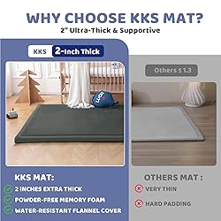 [2 Inches Ultra-Thick & Supportive]: Crafted with 2-inch (5CM) high-density memory foam muscle mat, this thick play mat for baby offers incredibly sturdy yet luxuriously soft, providing a safe and comfortable baby floor play mat that protects during tummy time,crawling and play. The ultra-soft flannel surface is fade-resistant, making it the ideal play mat for babies 0-6 months and beyond to explore with confidence. [Our Promise of Certified Safety]: We believe safety should be a guarantee, not a question. That's why our baby activity mat is independently certified to be free from harmful chemicals and heavy metals, and features advanced powder-free memory foam to protect your baby's respiratory health. It meets all rigorous US safety regulations, ensuring a fully protected and healthy play space for your little one. Choose with absolute confidence in this playmat for babies. [Multi-Functional for Every Family Moment]: More than a foam play mat, it's a versatile nursery rug for playrooms, a cozy spot for family time, and a supportive large play mat for infants to toddlers, adapting to your family's every need [Effortless Cleanup with Water-Resistant Surface]: Accidents happen, but cleanup is quick. Our baby crawling mat features a specially treated surface that resists liquid absorption, allowing you to effortlessly wipe away spills with a paper towel or cloth in seconds. It's the ultimate combination of convenience and practicality for a busy parent's lifestyle. [Getting Your Mat Ready for Play]: Your large baby play mat is compressed for delivery. Once opened, it may look thin and wrinkled — this is totally normal! Let it rest unrolled for 3–7 days to restore its full 2-inch height and comfort. If you'd like to speed things up, try steaming it lightly or using a warm iron carefully over a cloth. Soon, your foam play mat for baby will be rebounded, super soft, and ready for fun!