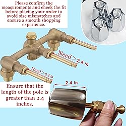[Note]!-Our shower knobs 3 pieces are not universal and only compatible with Verve tub shower handle . Not compatible with Gerber.Only suitable for this “2-3/8 inch height, 12tooth broach stem", Please check the faucet valve core stem before purchasing.To ensure you purchase the correct item and to save your time, please feel free to send us a photo for confirmation before placing your order. Shower Knobs 3 Piece Replacement Perfect Compatibility: Specifically designed for Pfister Verve bathtub and shower faucets with a 2-3/8" tall, 12 Tooth Broach Stem. Hand-polished with premium plating for excellent heat and wear resistance. The finish maintains its luster and hardness even under high temperatures, ensuring a long-lasting shine The sleek design complements any bathroom decor. Whether it's the shower knobs or the bathtub knobs.The ergonomic shape makes it easy for children and seniors to grip, turn, and control the water flow. Comes with clear plastic hot, cold, and diverter index buttons Faucet Knob Replacement Easy Installation: Replace only the shower knobs 3 piece instead of the whole faucet system, saving time and money.Includes 3 mounting screws and requires only a flathead screwdriver. Complete the DIY installation in just 10 minutes without professional skills