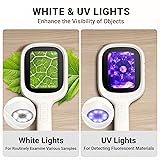 Smart Autofocus: Fast focusing, instant clarity: Eliminate the complexity of manual focusing forever—save time and elevate your efficiency. Designed for intuitive operation, it’s effortlessly accessible for users of all ages. (Optimal focus range (0.43-0.63 in) Dual LEDs for Illuminated Results: The 8 White + 8 Ultraviolet LED system offers versatile illumination. While the White light focuses on surface details (e.g., circuits, bacteria slides, coins, etc), the UV light reveals hidden flaws (e.g., micro-cracks, residues, etc.). Switch effortlessly between both modes to precisely meet professional needs across electronics, jewelry, biology, and more. 2.8-inch IPS Display with Crisp, Precise Visuals: Discover more with the crystal-clear, high-resolution color LCD. Observe every cell or circuit in vivid detail on the large 2.8-inch screen—eliminating eyestrain and enabling perfect on-the-go sharing and documentation. Unique Concave Lens and Ergonomic Handle: This microscope features a design that enables clear, detailed observation of various objects. The handle naturally maintains a level alignment with any surface, ensuring stable viewing and reduced operator fatigue. Portability Meets Performance: Weighing only 0.25 lbs with a miniaturized footprint, this microscope is the perfect mobile companion. Seamlessly transition from indoor lab work to outdoor adventures—effortlessly inspect botanical samples, insects, and more; turning any outdoor excursion into a journey of discovery. Versatile Professional and Hobbyist Tool: The MS200 Microscope serves a wide range of applications, making it the ideal choice for coin collectors verifying mint marks, electronics inspectors troubleshooting PCBs, jewelers examining gemstone inclusions, entomologists documenting specimens, educators and researchers conducting detailed studies, and curious enthusiasts exploring everyday objects up close. Please Note: No memory card is included. Without a memory card, you can only take photos (stores ~35 images). Video recording is not available. With a memory card, full photo and video recording functions are enabled.