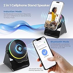 【Wireless Induction Speaker】- No Bluetooth Pairing Needed, experience instant, high-fidelity sound with cutting-edge wireless induction technology. Simply place your smartphone on the stand, and the built-in speaker amplifies your audio without any Bluetooth connection or app installation. Perfect for streaming music, podcasts, or calls at home, in the office, or outdoors 【Multifunctional Cool Gadget】- This 4 in 1 device functions as a wireless induction speaker, Bluetooth speaker, adjustable phone stand, and RGB ambient night light—delivering convenience, functionality, and style in one sleek design. Whether you’re working, watching videos, or chilling out, this gadget fit into your daily life and enhances your tech experience 【Adjustable & Stable Phone Stand】- The smartphone holder features a anti-slip triangle base to protect your phone from slide and scratches. The phone cradle angle can be 300 °adjustable to provide you a comfortable viewing angle when you’re enjoying movies, reading, studying and playing games, etc 【Universal Compatibility】- Designed for wide compatibility, this phone speaker stand supports all major 4-13 inch electronic devices, such as iPhone, Samsung Galaxy, Android phones, iPads, tablets, e-reader and more. NOTE: Please take off the protective cover when you’re using induction mode 【Perfect Gift for All Ages】- Looking for the cool tech gift? This wireless induction speaker stand is a standout choice for Christmas gifts, birthday gifts, mothers day gifts, fathers day gifts, valentine's day, anniversary gifts, back to school gift. Great for men, women, wife, husband, teens, students or anyone who appreciates cool, innovative devices with real utility